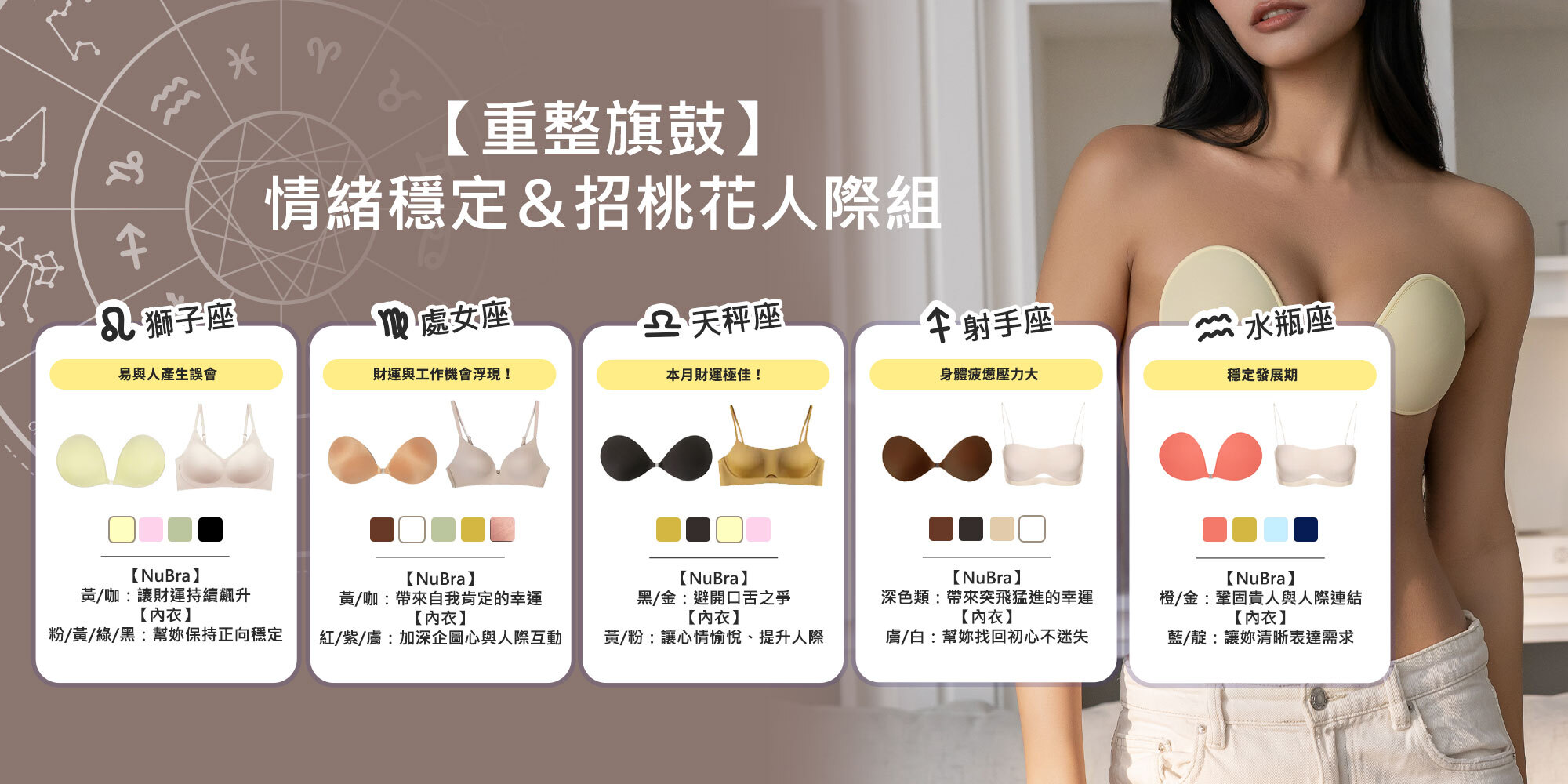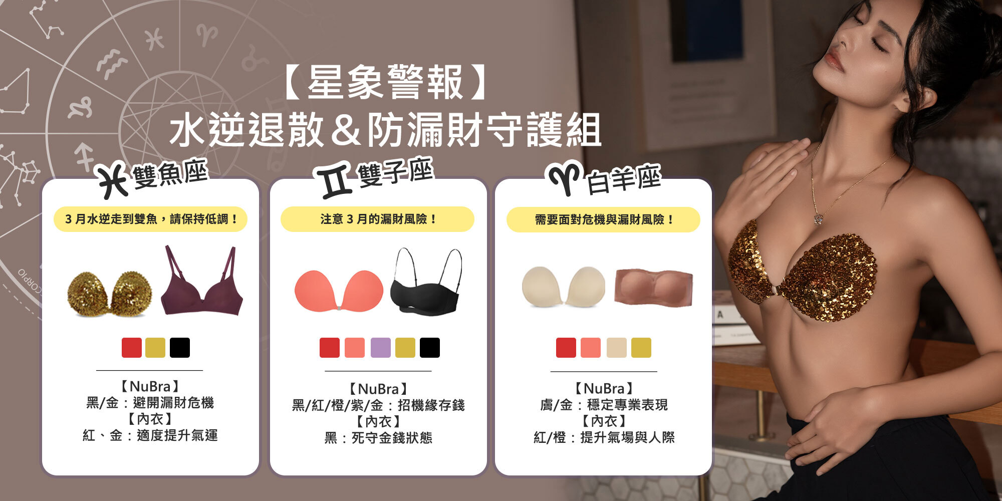 搭配【紅色、金色】NuBra 讓財運持續飆升。