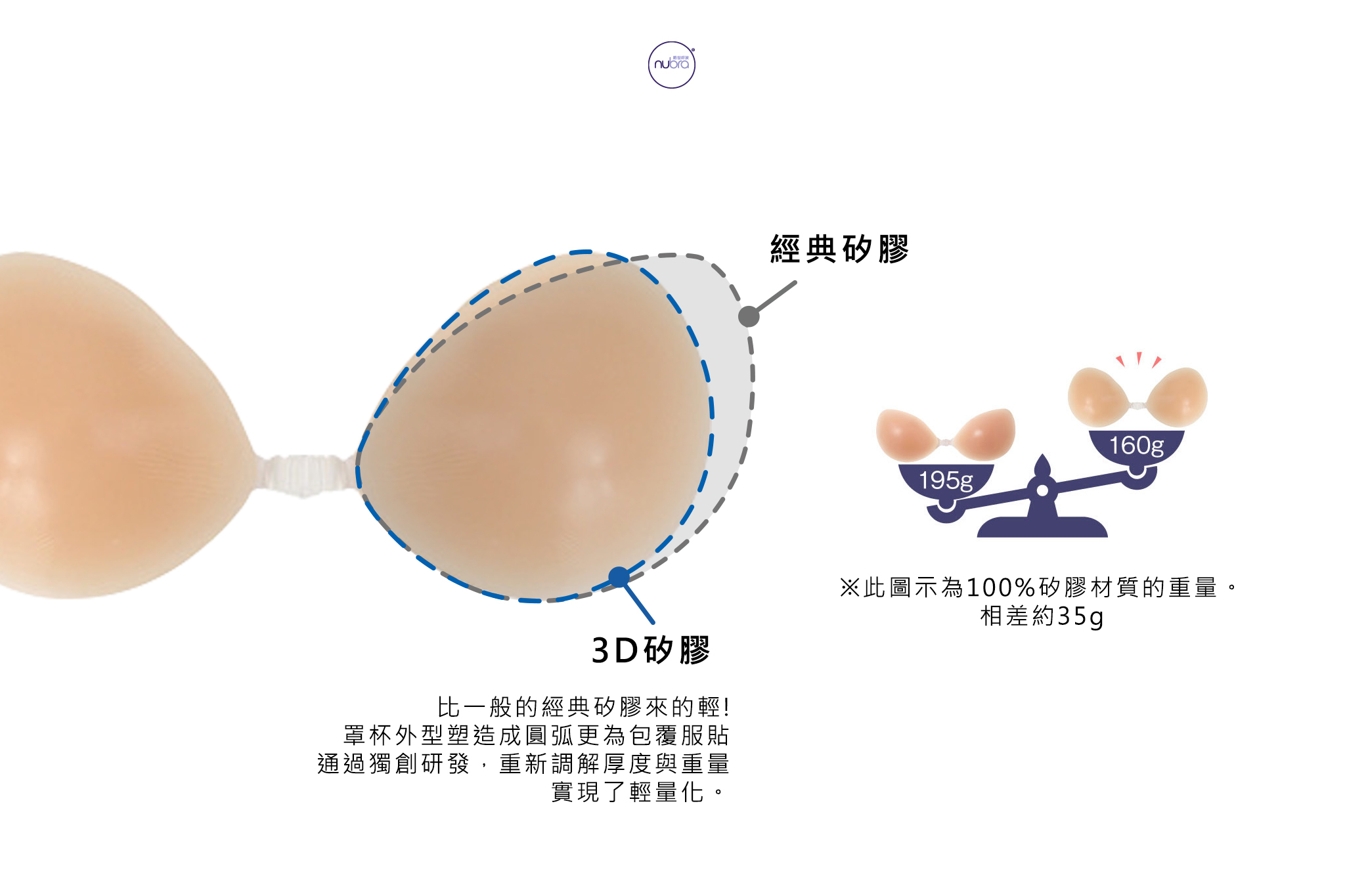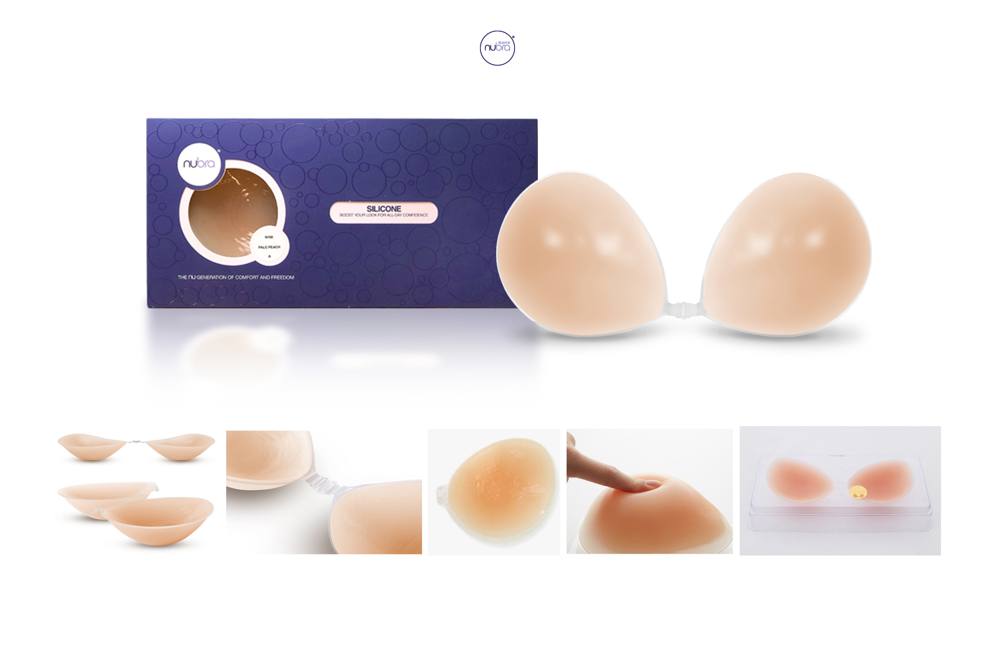 NuBra首創研發出3D結構設計隱形內衣,淺緣罩杯更能服貼胸部,罩杯的形狀如同一個自然的剪影。