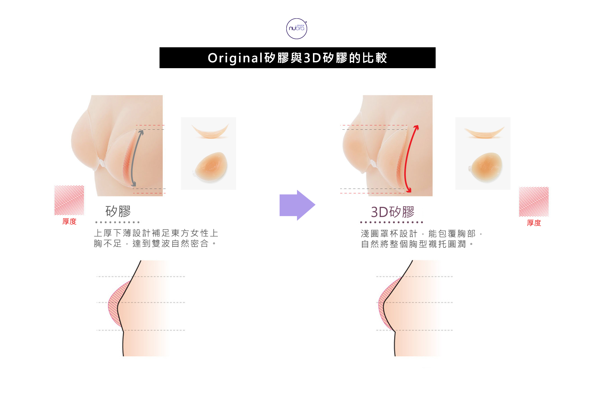 罩杯曲線上,更能夠表現出胸部渾圓的胸型,自然將整個胸部襯托圓潤。