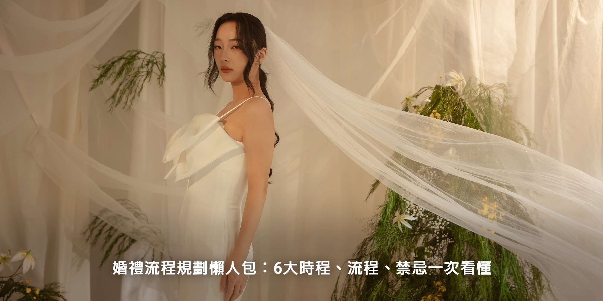 多數新人在準備婚禮時,遇到的第一個難題不是選婚紗、不是找場地,而是 「我們到底要先做什麼 ?」 婚禮相關資訊看似很多,但真正動手規劃時,常常卡在流程順序、長輩期待與實際執行之間。本篇文章將帶你一次搞懂: 婚禮 6 大時程怎麼排 每個流程實際在忙什麼 婚禮禁忌哪些真的要注意 適合正在備婚的新娘、新郎,以及參與決策的家人們一起共同討論。 婚禮流程怎麼排?新人最常卡關的其實是「順序」 多數新人在規劃婚禮時,真正卡住的不是要不要辦,而是先做什麼、後做什麼。其實婚禮流程的安排,可以用一個很實際的原則來判斷「越早影響後續決定的事情,就越早安排。」 以下是一個多數新人都適用的流程排序邏輯: 先確認「時間與形式」,再處理細節婚期、宴客形式(只宴客 or 訂婚儀式+宴客)、賓客規模,會直接影響後續所有安排,因此必須優先確定。這一步完成後,後面的流程才不會一直推翻重來。 需要拍照、試穿的流程要提早 拍婚紗、試婚紗、試妝等流程,都牽涉到檔期與實體準備,通常需要較長的前置時間,因此會排在迎娶與宴客之前6個月到一年,就要開始著手準備了,避免時間被壓縮。 儀式性流程依家庭共識調整 像是提親、訂婚、安床、回門等流程,是否完整執行,會因家庭習慣不同而有差異。建議先確認「要不要做」,再決定「怎麼做」,流程才會順暢。 當天發生的事情,最後統整 迎娶、闖關、證婚、宴客都屬於婚禮當天的流程,通常會在前期流程都確定後,才進行細部時間編排,避免臨時更動。 也因此,多數新人最後會採取的是「保留大順序、細節彈性調整」的做法,而不是全盤照搬傳統流程,或完全不照流程行事。這樣既能兼顧實際執行,也能降低與家人、婚禮團隊之間的溝通成本。 婚禮 6 大時程一覽表,新人必存! 從實務角度來看,婚禮流程可大致分為以下 6 個階段,實際執行時可依家庭習慣、婚禮形式與雙方共識做彈性調整。建議先掌握整體順序,再依需求簡化細節,流程會更順、不易出包。流程階段流程內容重點建議安排時間是否可彈性調整 提親/訂婚雙方家庭正式溝通婚事、確認婚期與形式婚禮前 6~12 個月可,依家庭共識拍婚紗婚紗挑選、試穿、拍攝與修圖 婚禮前 3~6 個月通常必做安床與嫁妝安床儀式、嫁妝準備與象徵性安排婚禮前 1~2 週可簡化迎娶與闖關新郎迎娶新娘、拜別與儀式流程婚禮前 1~2 週視婚禮形式婚禮儀式與宴客證婚、宴客、換裝與賓客互動婚禮前一個月 通常必做回門與婚後禮俗婚後回娘家、禮俗完成婚禮後2-3天可視情況省略 新人最常選擇保留的流程是哪些? 在多數實際案例中,「拍婚紗」、「迎娶」、「婚禮儀式與宴客」這三大重點,幾乎是新人一定會進行的流程,因為這三個環節直接影響婚禮紀錄、賓客參與與整體完成度。 至於訂婚、安床、嫁妝與回門,則多半會依家庭習慣與雙方共識做調整,有些新人會保留象徵性儀式,有些則選擇簡化或合併進行。 婚禮流程一:提親與訂婚流程怎麼走? 婚禮流程的第一步會從提親(下聘)與訂婚儀式開始,這一階段是雙方家庭正式建立共識、確認結婚相關安排的核心。 提親(下聘)流程與細節 提親是雙方家庭見面的第一個正式儀式,重點在於「正式宣布婚事 & 確認基本安排」。男方家長帶著大聘小聘前往女方家,正式拜訪雙方父母。 由雙方家長討論婚期、婚宴形式、聘金、喜餅、賓客範圍等細節。(這些都會影響後續流程與預算安排) 女方家會收下小聘,或小聘+部分大聘,象徵接受婚事。(現代大部分會是退大聘收小聘;聘金行情大約在12-36萬,但也可以由雙方家長商討) 重點提醒: 這不是婚宴,而是家庭溝通的正式時刻,穿著以端莊、整齊為主,不需過度隆重。在這個階段,新娘主要是展現敬意與專注於溝通即可。 訂婚儀式流程(正式建立婚約)訂婚(文定)通常緊接在提親之後,象徵婚約正式成立。流程可能包括: 公布訂婚日與形式(可與婚禮同天或獨立舉行)。 雙方交換聘禮與喜餅。 奉茶給長輩以示敬意。 有些新人會選擇把訂婚跟結婚安排在同一天完成,使流程更集中、更省事;也可以在婚宴前一兩天完成,避免婚禮當天太趕。當然,如果想更簡化,有些新人會直接把訂婚儀式省略,只保留婚宴儀式。婚禮流程二:拍婚紗流程規劃,新娘最容易忽略的不是禮服 拍婚紗不只是拍照,它是婚禮流程中最早感受到「婚禮真的要開始了」的里程碑,也是未來留作紀念的重要環節,因此需要提前與攝影、造型團隊密切聯繫與配合。 拍婚紗前的整體安排拍婚紗通常安排在婚禮前 3~6 個月,這樣留給造型、選片與修圖的時間比較充裕。紮實的時間安排也讓最終成品與婚禮節目表更好銜接。 完整拍婚紗流程大致包括: 挑選婚紗&西服:選擇符合你們風格與婚禮整體主題的服裝。 試妝與試穿:一定要確認妝髮與禮服是否搭配,避免當天不合拍。另外,試穿婚紗時記得要穿「隱形內衣」去試穿,因為有些婚紗店未提供隱形內衣,也怕貼身衣物共用衛生問題,因此記得先準備自己的NuBra,才能確保婚禮當天尺寸合不合身哦! 拍攝當天行程安排:與攝影師與造型師確定每套造型的時間與動線。 後續選片與修圖:拍完後挑照片與修圖交付成品。 新娘最容易忽略的 3 個細節 很多新娘只注意禮服款式漂不漂亮,適不適合自己,但以下三個細節其實直接影響拍照成果: 隱形內衣穿搭是否搭配禮服款式 不同禮服(露