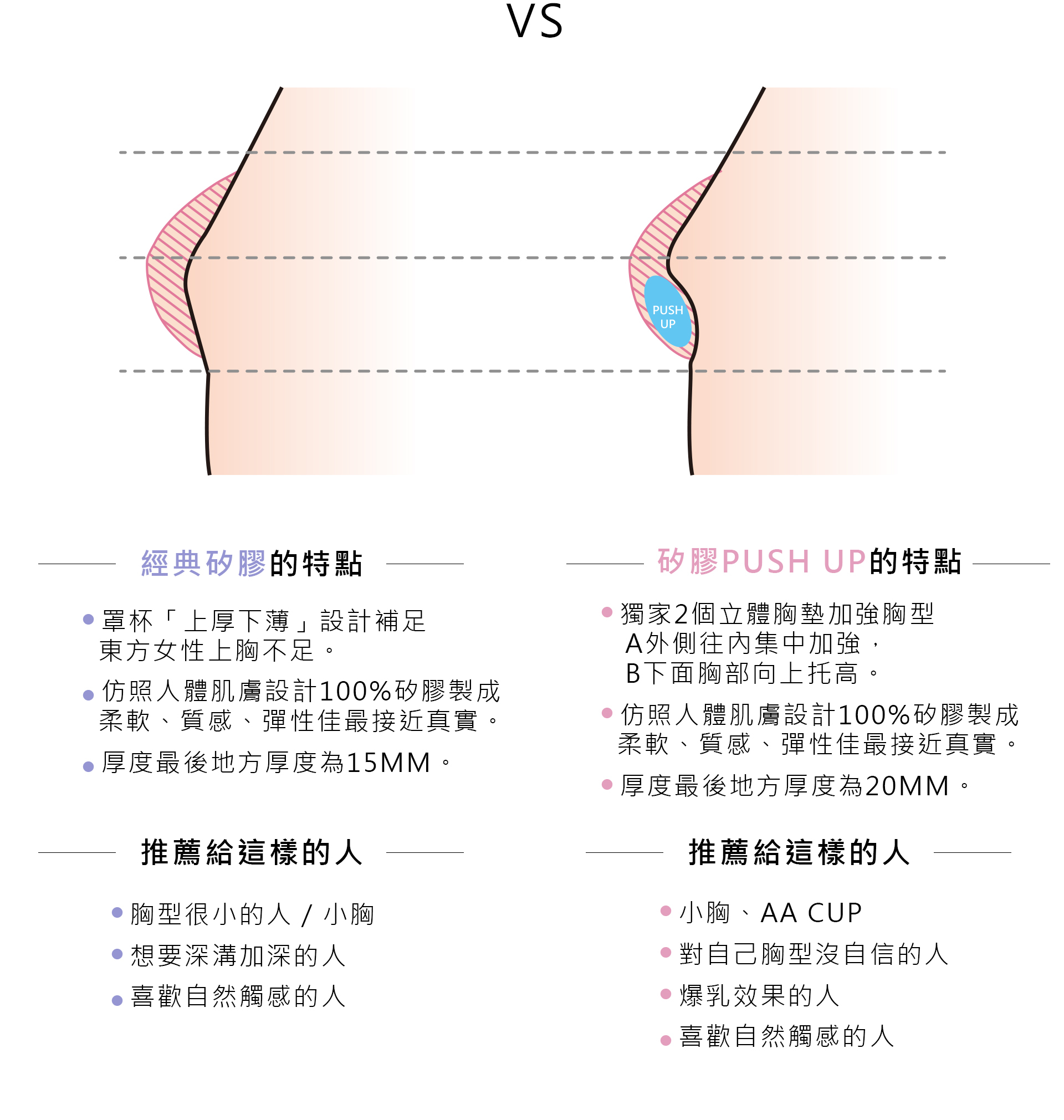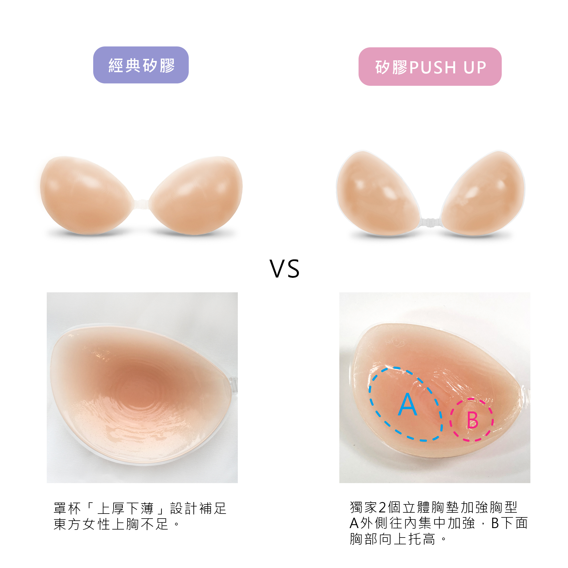 經典矽膠 VS 矽膠PUSH UP