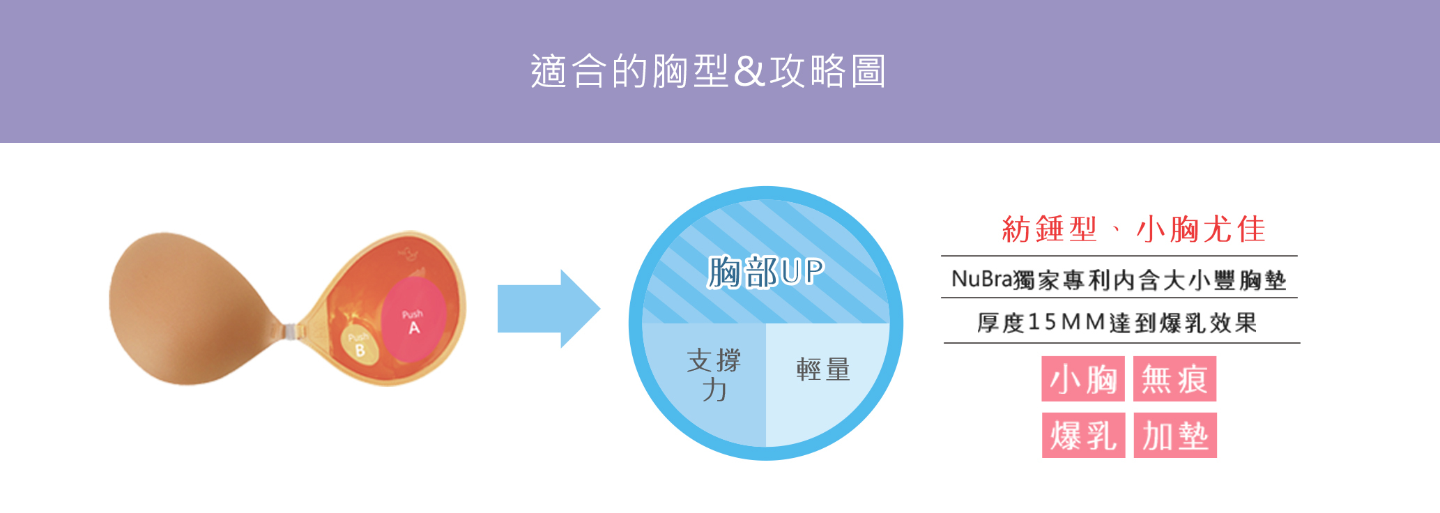 獨加首創Push Up技術,增加胸墊在底部和兩側的兩個地方,