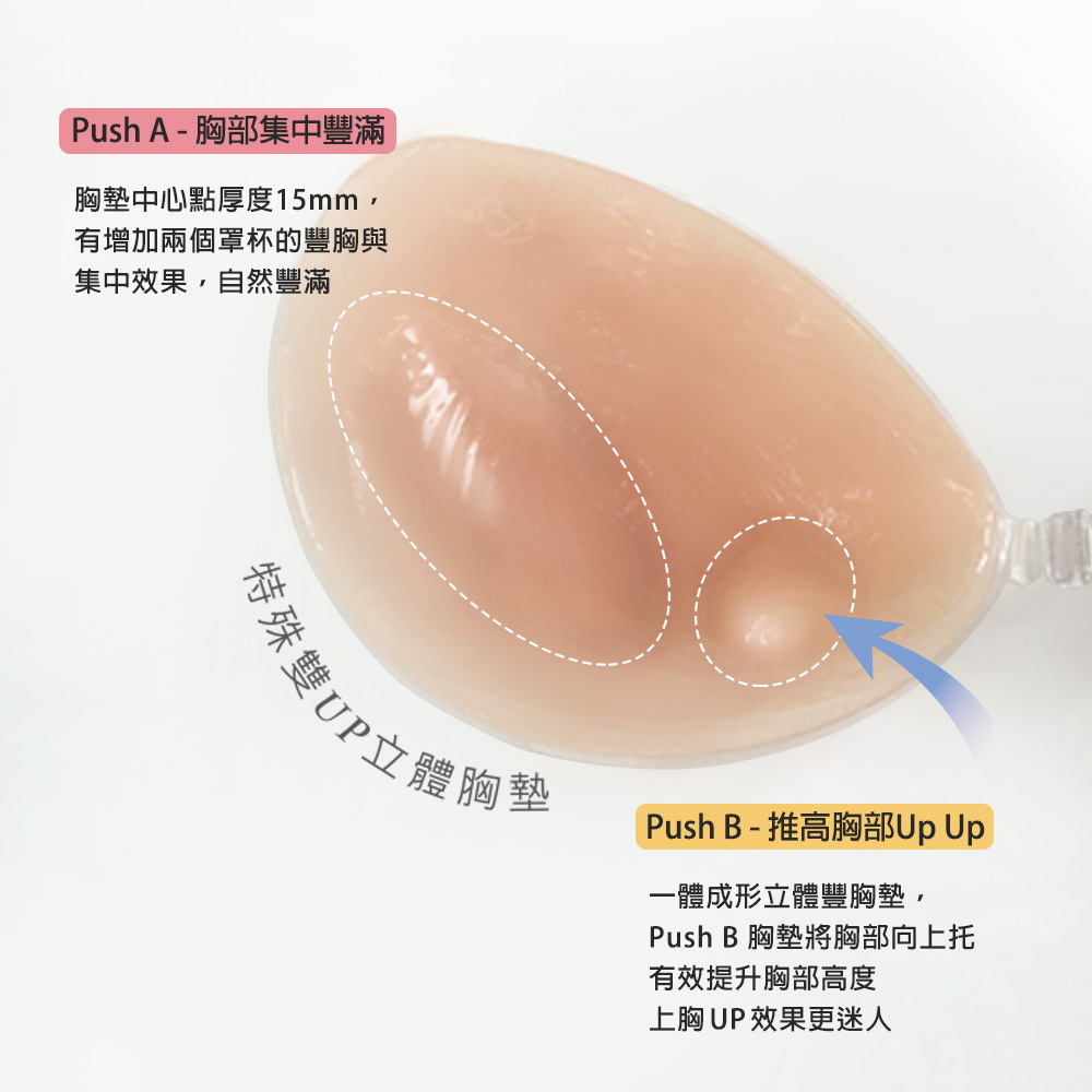 雙胸墊集中設計|醫療級矽膠|自然托高|服貼無痕